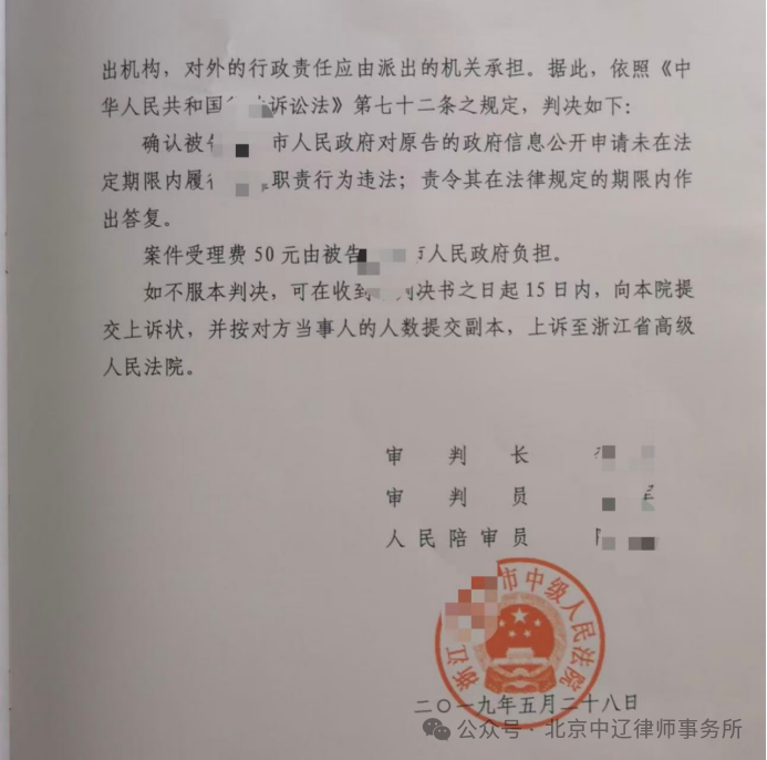 浙江胜诉案例:政府信息公开不作为,判决确认违法并责令在法定期限内作出答复!