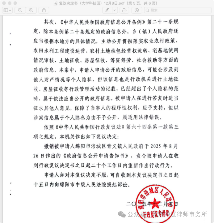 四川胜诉案例:政府信息公开不依法答复,被行政复议撤销并责令重新答复!